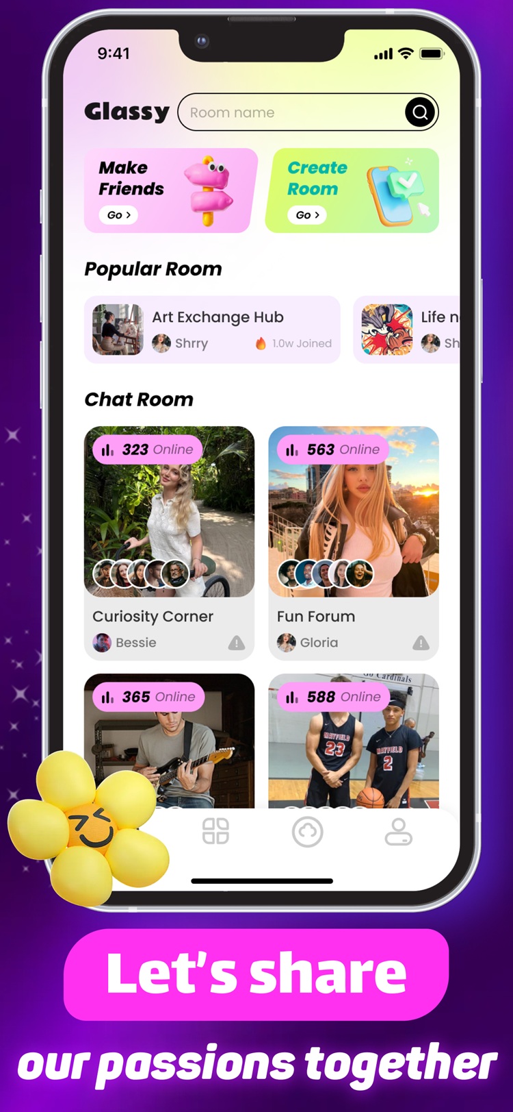 Whether you're looking for new friends or want to share your interests, Glassy makes it easy to connect and interact in a welcoming environment.